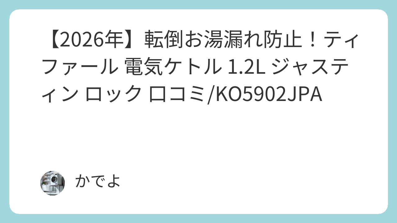 こんにちは、かでよです。今回は、転倒時のお湯漏れ防止機能が特徴の「ティファール 電気ケトル 1.2L 大容量 転倒お湯もれロック 「ジャスティン ロック カフェオーレ」 省スチーム設計 ブラウン KO5902JPA」について、徹底的に解説しますね。