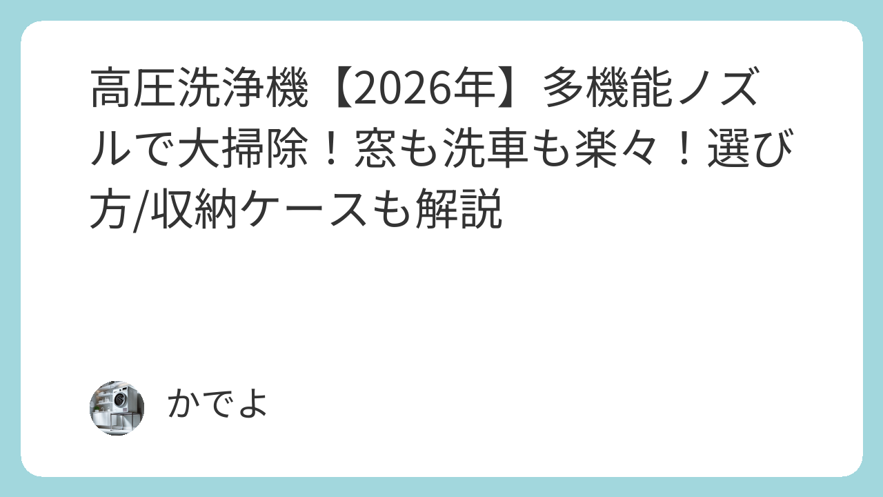 高圧洗浄機【2026年】多機能ノズルで大掃除!窓も洗車も楽々!選び方/収納ケースも解説